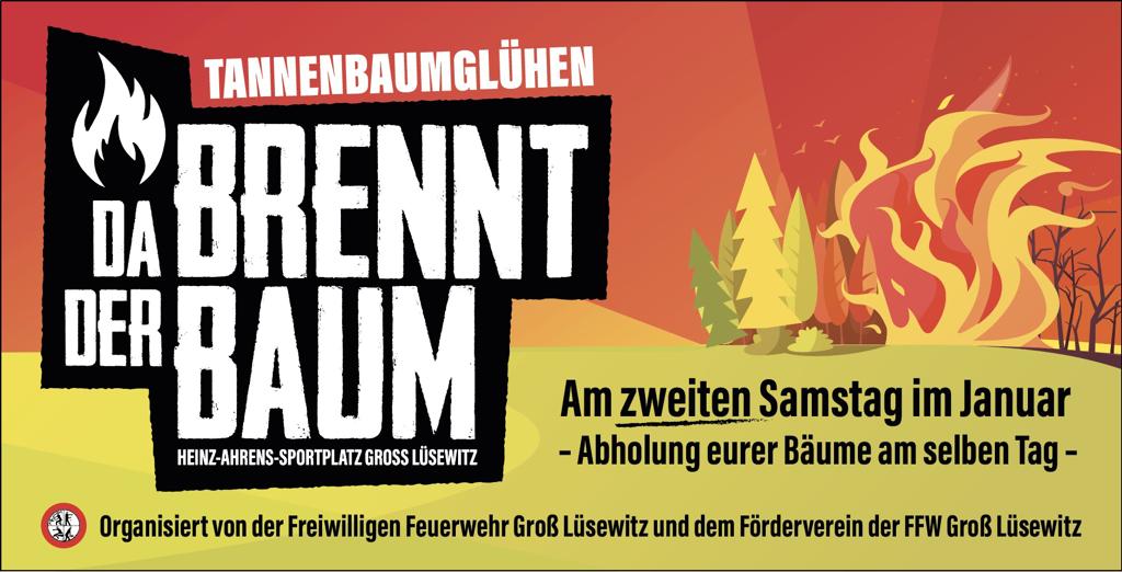 Unser Tannenbaumglühen findet am 11.01.2025 in Groß Lüsewitz auf der Heinz-Ahrens-Sportanlage statt. Beginn ist um 17:00 Uhr. Natürlich wieder mit unserer Rauchwurst, Glühwein und vielleicht auch noch Zuckerwatte.